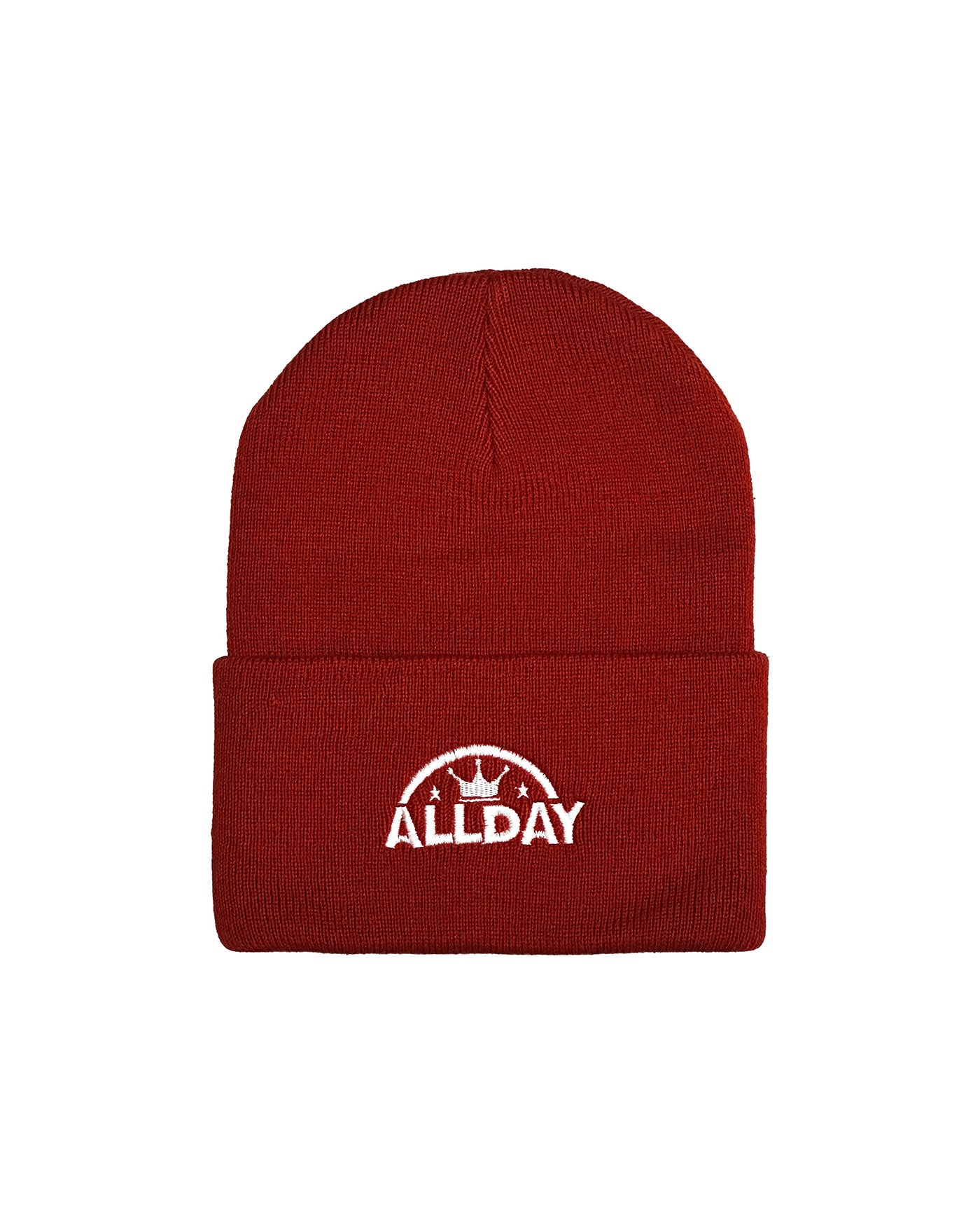 design:ALLDAYロゴが刺繍されたアクリル製のベーシックなロングビーニー。